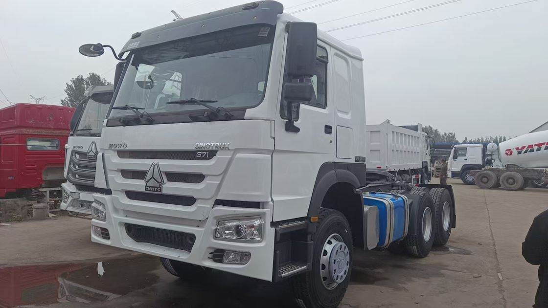 사용 된 SINOTRUK HOWO 371 6x4 트랙터 헤드 WD615.47 371HP 엔진과 HW19710 10단 수동 변속기가 장착되어 있습니다. 중량 운송, 건설 함대 및 장거리 물류에 이상적입니다.중국에서 수출 준비.
